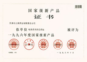 公司目前已經具備年產各類藥芯焊絲40000噸的生產能力,公司藥芯焊絲產品通過14國船級社認證。并通過GB/T19001-2000國際質量體系認證。公司產品獲國家級新產品證書...